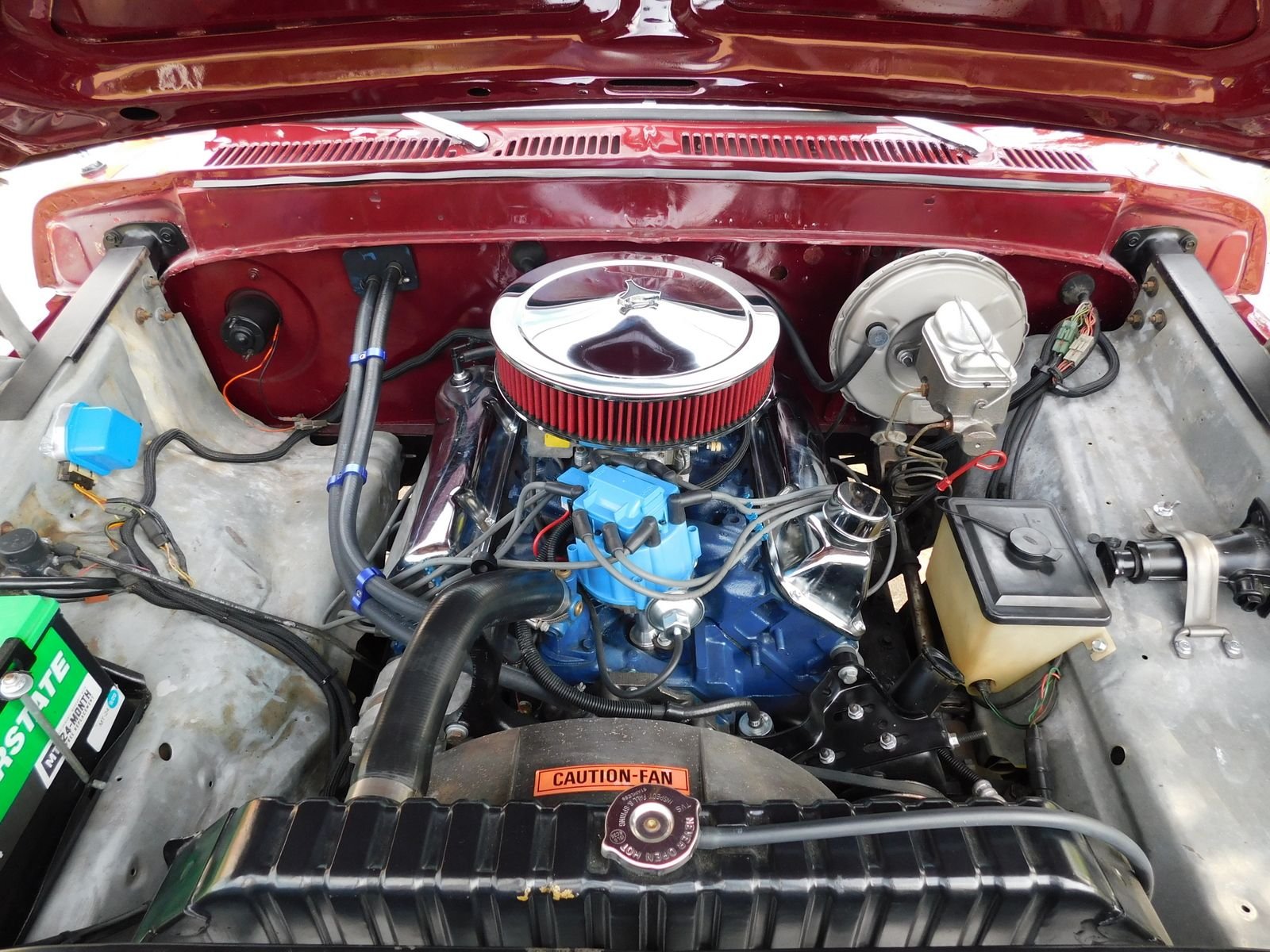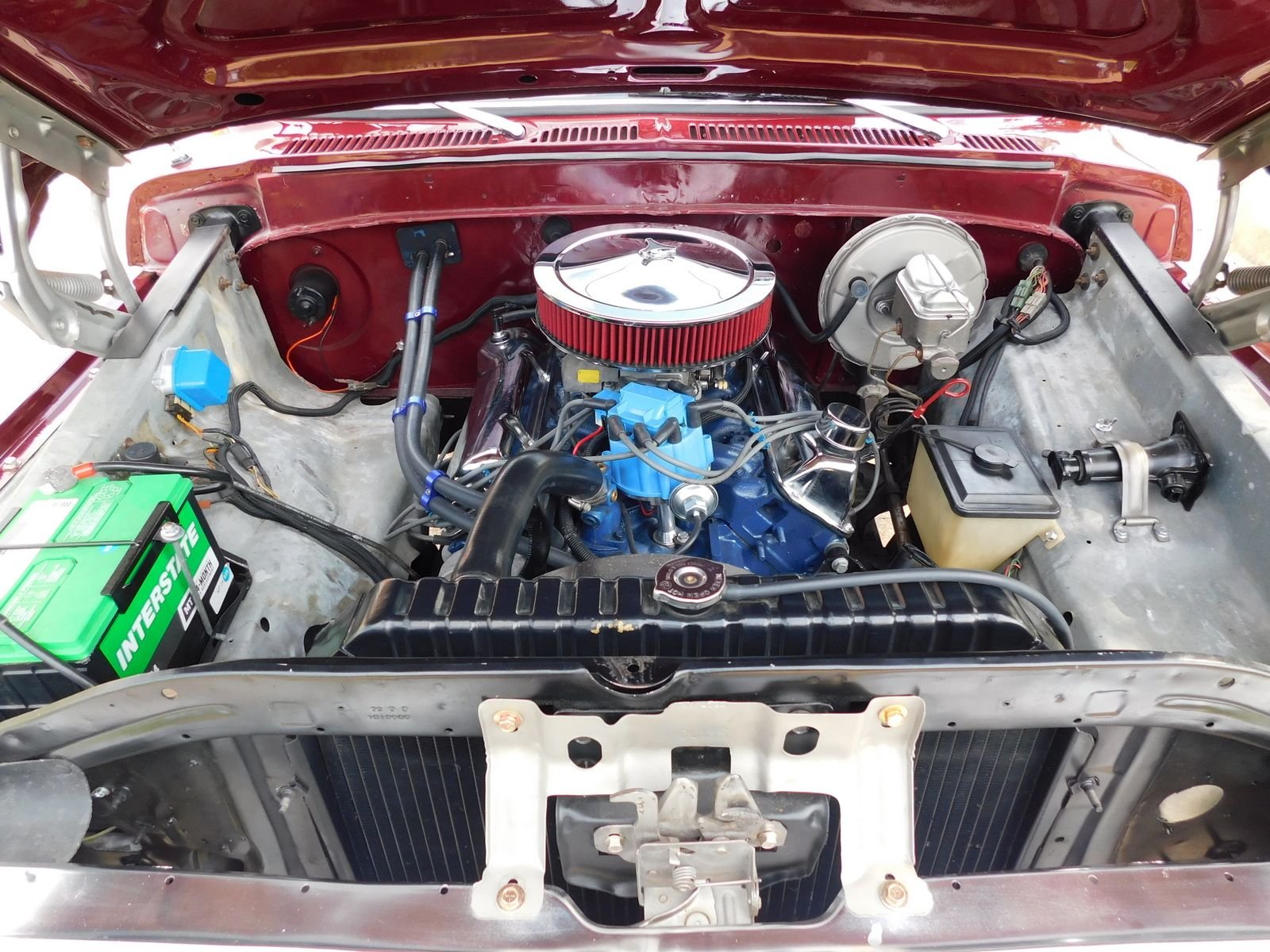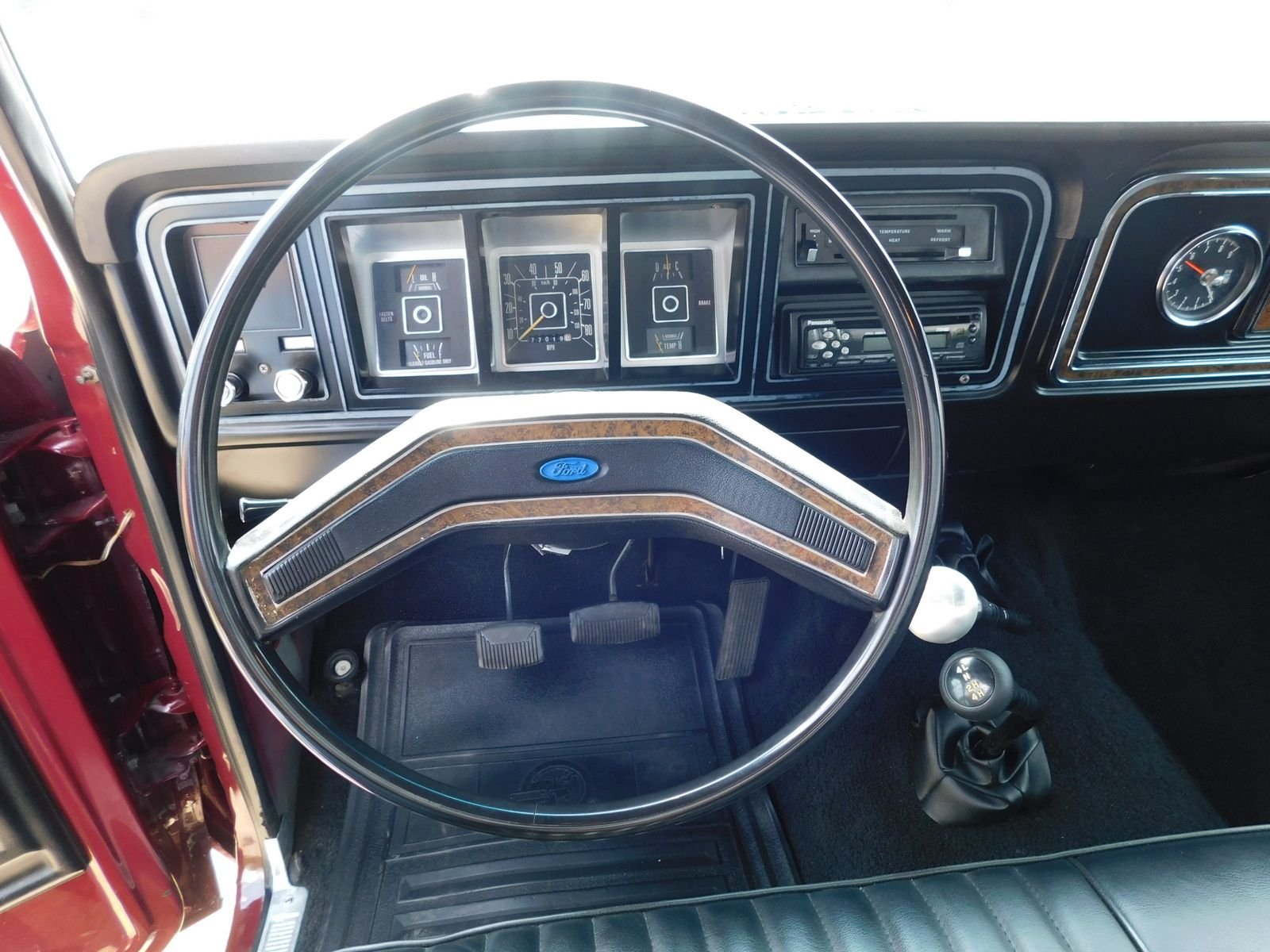 Powered by a 351 V8 and 4-speed manual transmission, it runs strong and drives great. The maroon paint shines with a mirror-like finish, and the body is solid with perfectly aligned panels. All chrome and trim are in excellent condition.